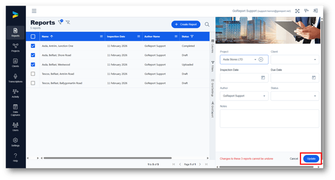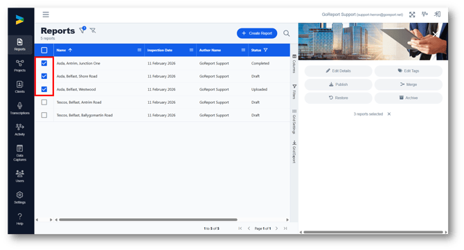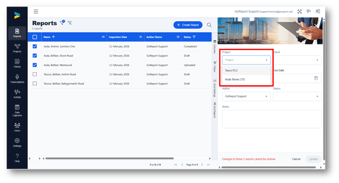 1. Go to the reports list and select the report / reports you would like to assign to a project.
