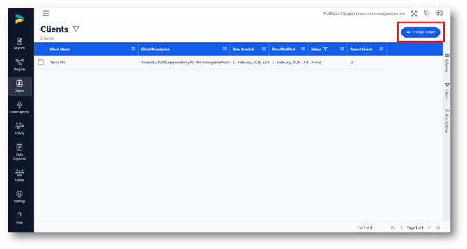 2. Click Create Client.