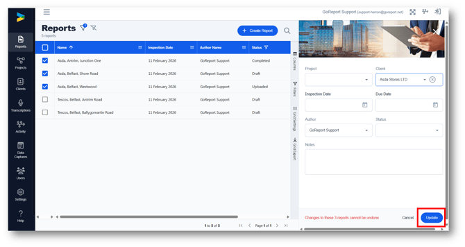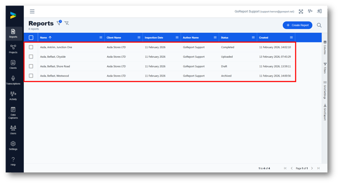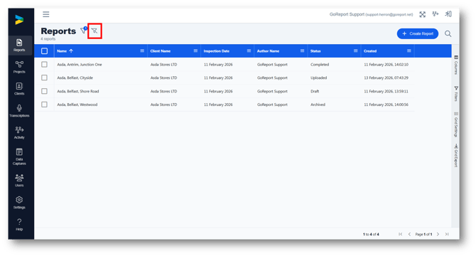 2. You will be taken back to the reports list and a filter has been applied to show only the reports assigned to that client.