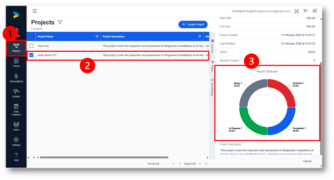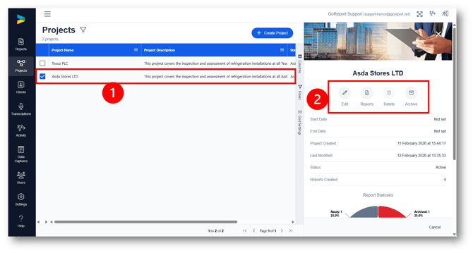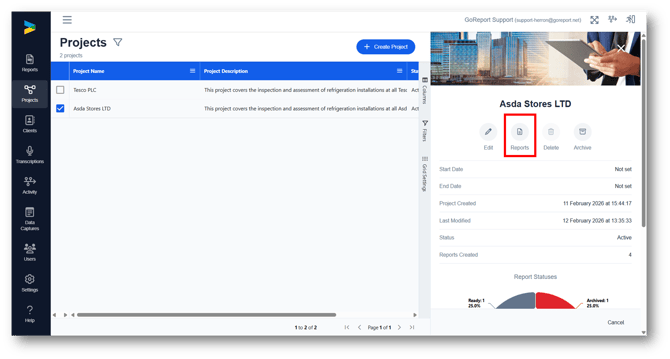 2. From here you can edit the project details, view all reports within the project, delete the project or archive the project.