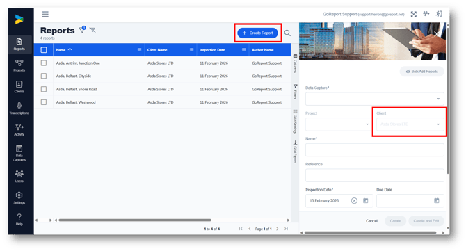 3. If you click Create Report while in a Client View the new report will default to be created assigned to that client.
