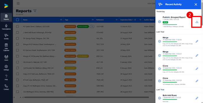- You can also download the file from the Recent Activity Tab.