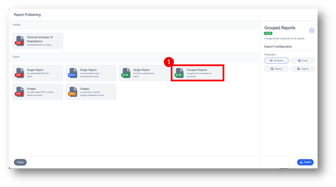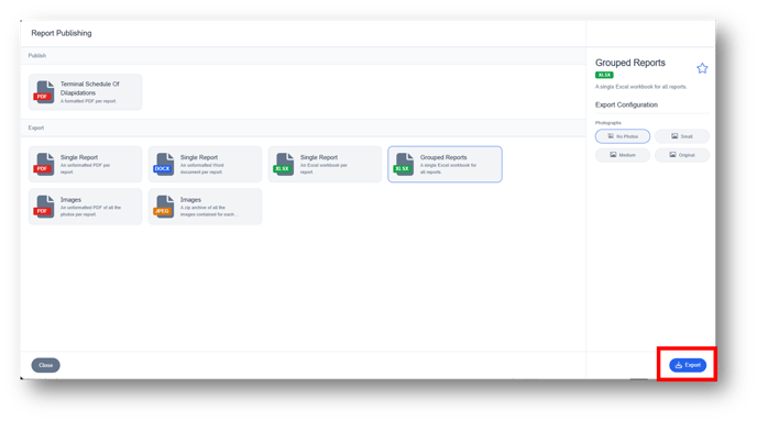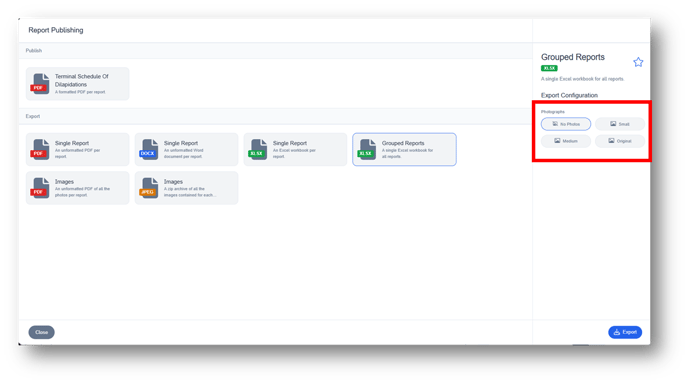 Note: If your Macro is designed to include links to photographs, you can choose which size of photos are included on the export.