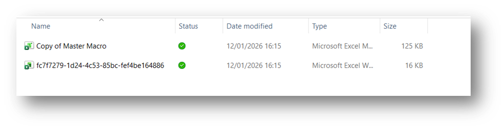 Important: The exported data and the copy of your Master Macro must be stored in the same folder for the Macro to work correctly.
