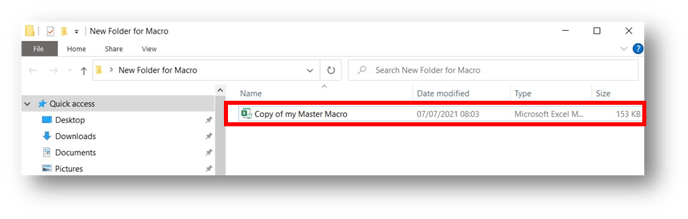 Copy your Master Macro (this should be stored in a separate location on your computer) and paste a copy into the new blank folder you’ve created.
